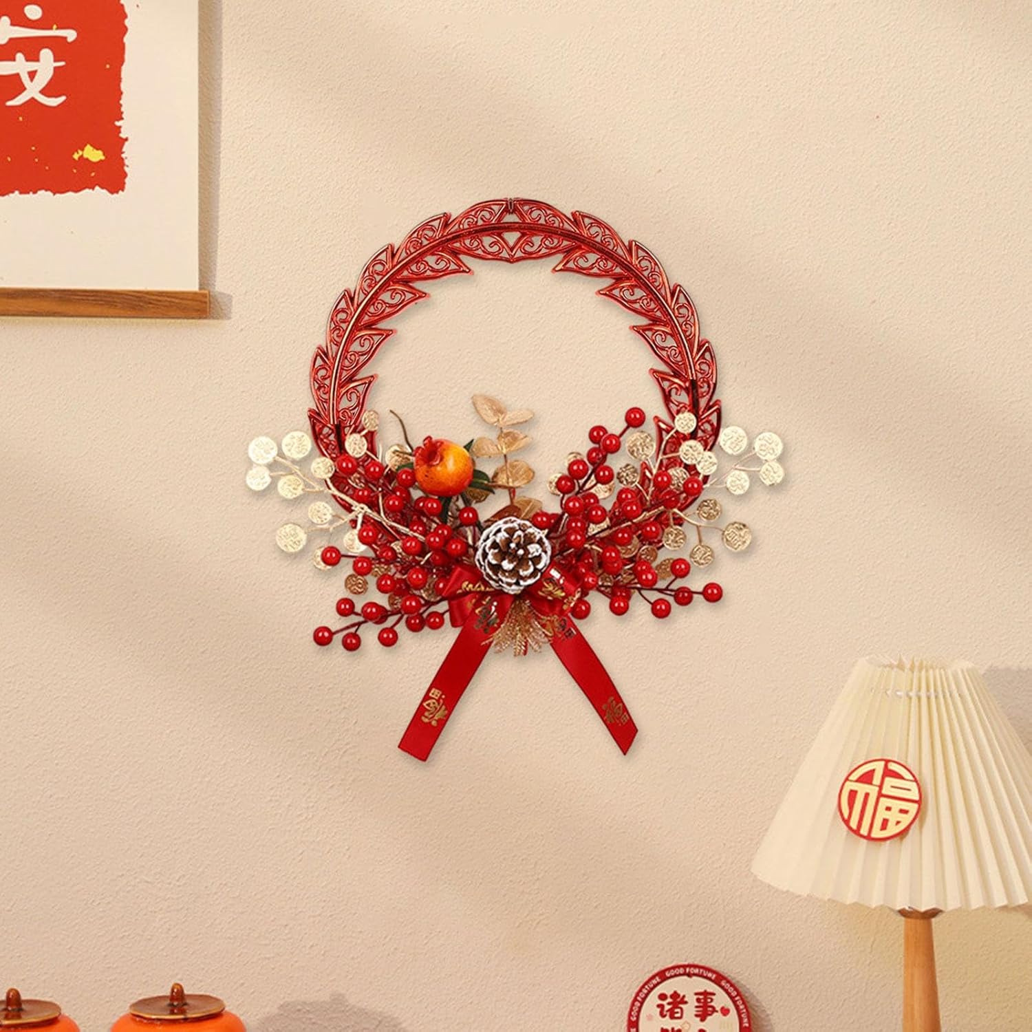 Description: - 【Chinese New Year Decorations】2024 Chinese Dragon Year Hanging Decorations with red wreath, artificial red berries, which symbolizes happiness, wealth, good fortune, and good wishes - 【Pp Material】Chinese Dragon Year Hanging Ornament is made of pp material, lightweight and - 【Occasion】Spring Festival Wall Decoration is for hanging on the wall of the bedrooms, kitchens, living rooms, dining rooms, and shop - 【Traditional Oriental Ornaments】Spring Festival Chinese Hanging Decoration with classic decorative elements, full of Chinese atmosphere, which bring a happy chinese new year atmosphere to your house - 【Home Decoration】Traditional Hanging Ornament suitable for Chinese new year party, Spring Festival, welcome occasion, family gathering, wedding, housewarming and so on.Size Chart:Style A: 39cmx39cm/15.35inchx15.35inchStyle B: 62cmx32.2cm/24.41inchx12.68inchStyle C: 39cmx38cm/15.35inchx14.96inchPackage Includes:1 Chinese Year Hanging OrnamentNote:Please allow slightly errors due to manual measurement and different monitors.