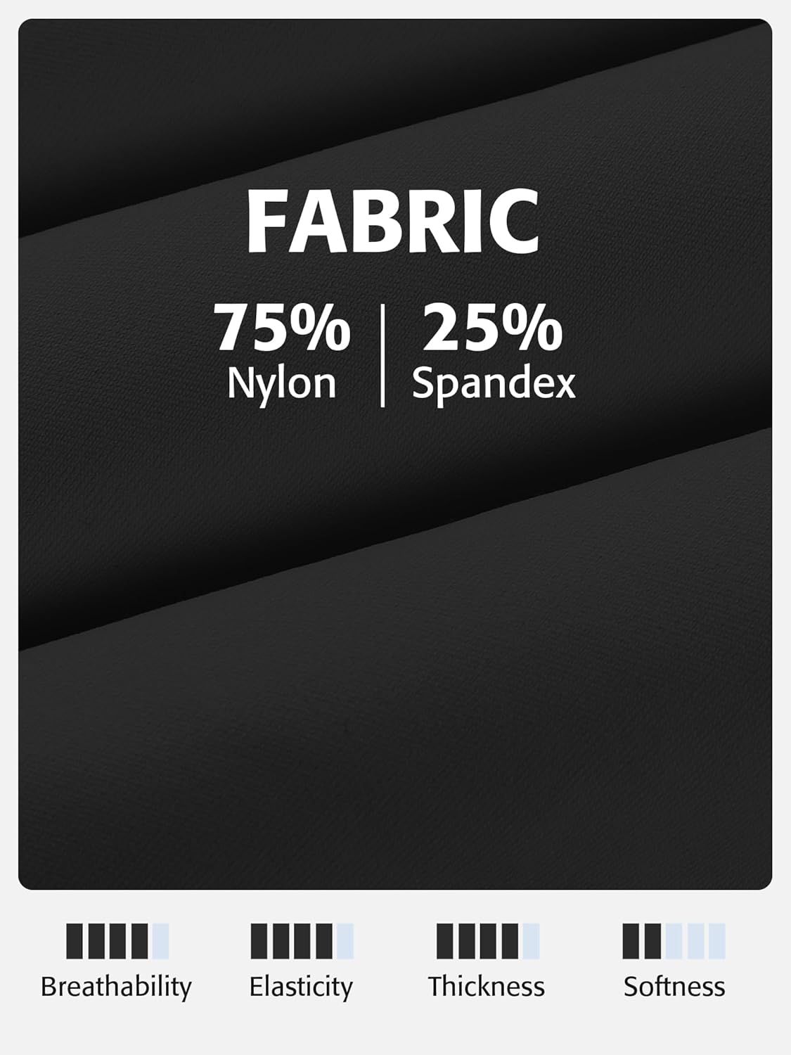| Fabric Type | 75% Nylon, 25% Spandex |