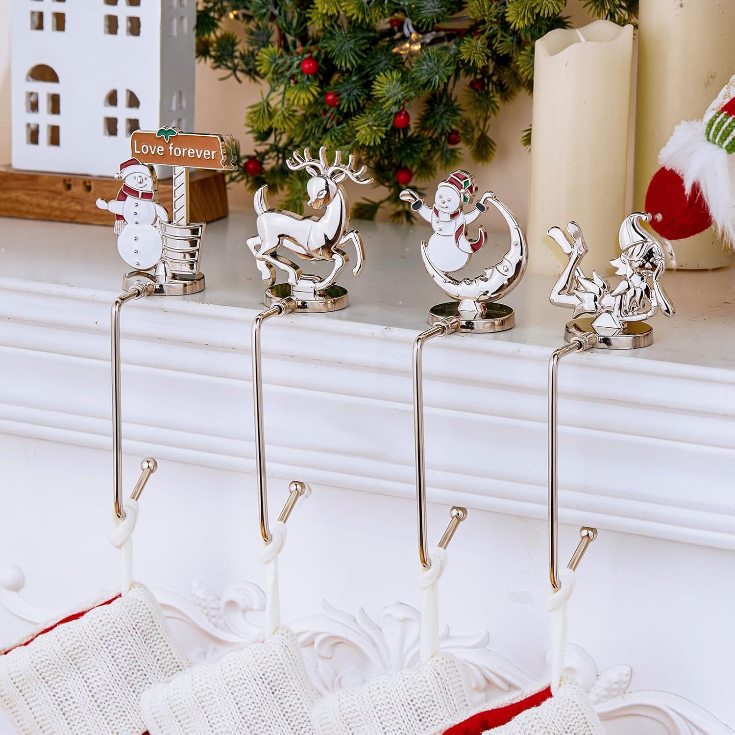Product Description: Christmas Themed Wood Room Stocking Hanging Hooks, also as a Delicate Christmas Ornament in Bedroom! SPECIFICATIONS: Weight: 0.6 - 0.7 lb Material: Wood, Iron, LED Package Includes: Wood Room stocking holder Cute and separative wood room stocking hangers, kid’s favorite and you deserve with it!