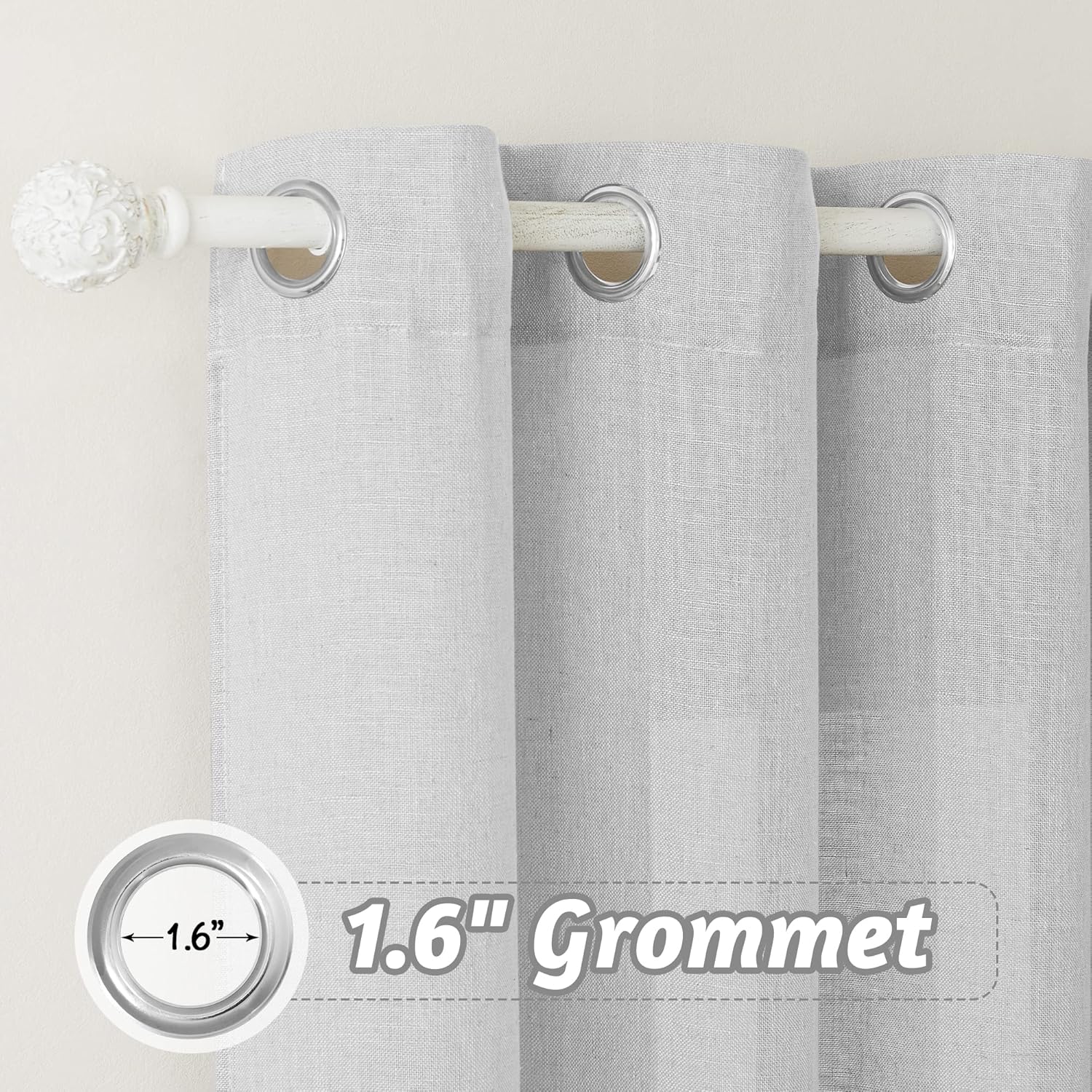 RYB HOME LINEN TEXTURE CURTAINS - Chic & Durable with Privacy Add a refined touch to your windows with these stylish curtains, offering a perfect blend of durability and modern elegance, while ensuring privacy for your space.KEY FEATURESWELL CRAFTED - Made from premium fabric with 1.6-inch metal grommets that fit most curtain rods. The sleek grommet design ensures smooth hanging and a modern, minimalist look, perfect for any space.LINEN TEXTURED - Made from a premium linen and polyester blend, these curtains offer a soft, breathable feel while ensuring long-lasting durability. The combination of natural linen and polyester provides a perfect balance of comfort for any room.SEMI SHEER PRIVACY - The linen fabric offers a perfect balance of soft light filtering and privacy. It gently lets natural light seep through while maintaining a level of seclusion, making it ideal for creating a cozy, private atmosphere in any room.ECO-FRIENDLY - Our flax linen curtains are crafted using eco-conscious processes. Both the materials and production methods meet environmental standards, ensuring a green choice for your home and the planet.CARE INSTRUCTIONS - Machine wash cold on a gentle cycle. Tumble dry low or hang to dry. Iron on low heat if needed. Do not bleach. For best results, avoid fabric softeners to maintain the natural texture.HERE TO HELPRYB HOME is always looking forward to serving our clients with warmth and full ranges of services. Please do not hesitate to contact us if you have any queries.